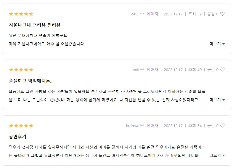 이번 포스팅에서는 뮤지컬 '겨울나그네'의 공연 정보와 예매 방법, 후기까지 정리해 보겠습니다. '겨울나그네'는 이미 소설과 영화로 너무나 유명하죠. 아름답고 먹먹한 스토리에 감성적인 선율이 관객을 사로잡는 뮤지컬, 바로 겨울나그네입니다.