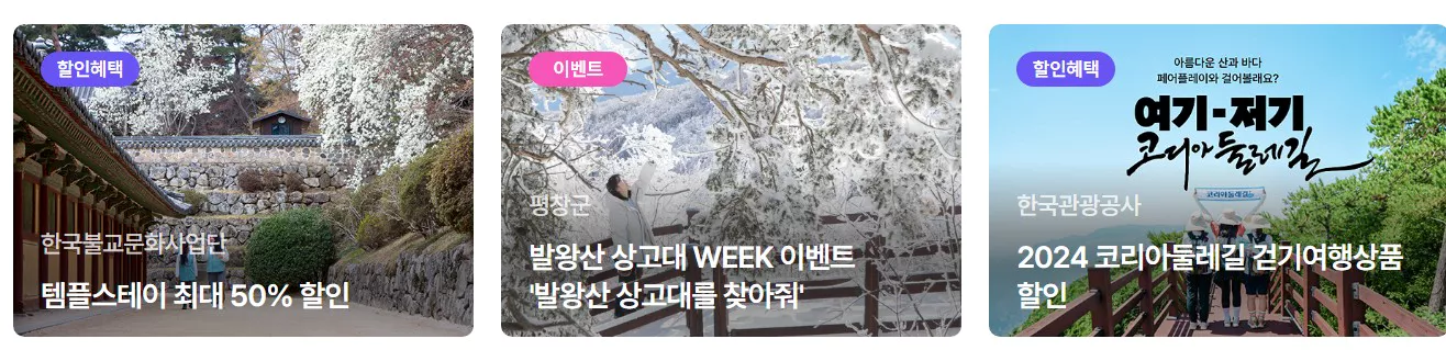 - 5만 원 이상의 숙박 상품 예약 시 3만 원 할인권을 받을 수 있으며, 2차 숙박 할인 행사도 예정되어 있습니다.